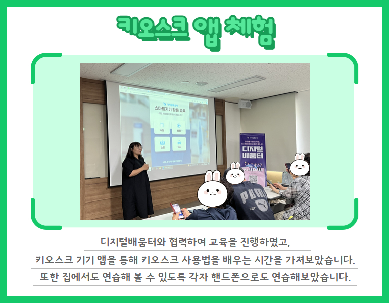 키오스크 기기 앱을 통하여 키오스크 사용법을 배우는 시간을 가져보았습니다.
