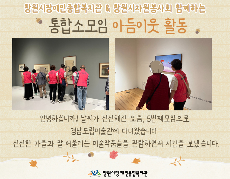 창원시자원봉사회와 함께 아듬이웃 활동으로 경남도립미술관에 다녀왔습니다!