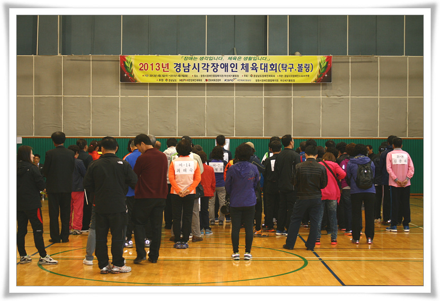 [2013.4.3. 시각장애인체육대회]아드미에요~~^^경남장애인체육회 주최, 경남시각장애인스포츠연맹 주관! 2013 경상남도시각장애인체육대회 『시각탁구』 종목이 4월 3일(수) 복지관 체육관에서 실시되었어요. 일반 탁구경기보다는 역동적이지 않지만 완전 소리에 집중해서 네트 밑으로 굴리는 실력은 대단했어요. 지켜보는 사람들의 침묵속에 긴장감이 더 했던 것 ...