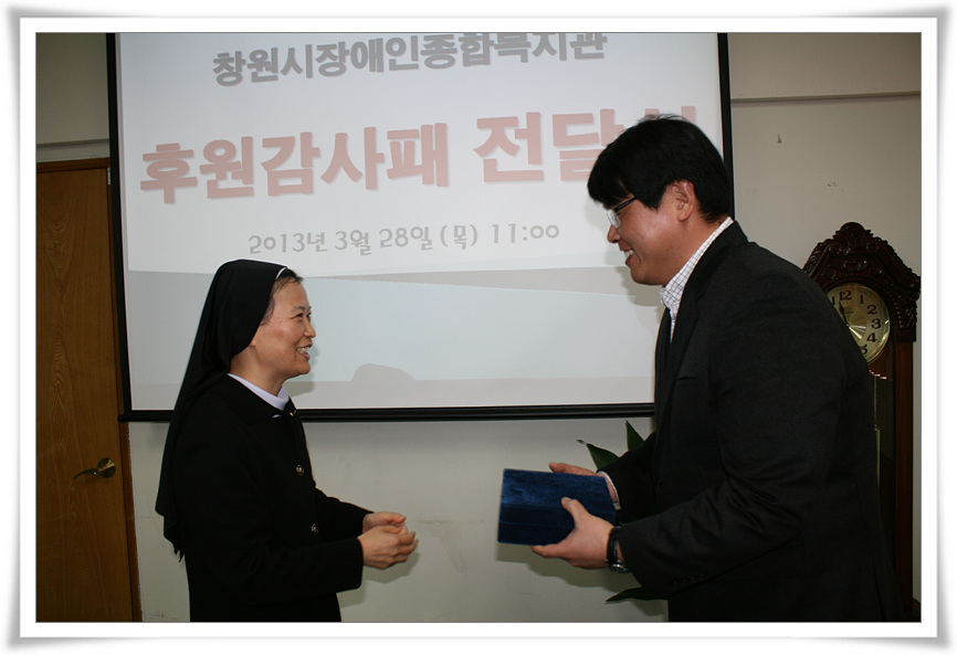 [2013.3.28. 복지관 후원회 “까리따스” 후원감사패 전달]