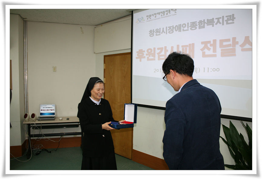 오늘은 평소 장애인에게 미래에 대한 희망과 재활의 용기를 복돋아 주고 복지증진에 기여하심에 감사의 마음을 담은 감사패를 드렸습니다.