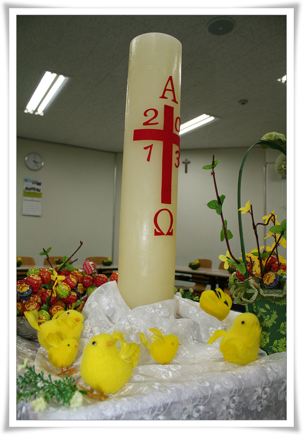 아침 주간조회시간에 정영숙 관장수녀님과 두분의 수녀님께서 손수 만드신 부활선물을 직원들에게 나눠주셨어요. 만드신다고 수고 많으셨거든요. 감사합니다.