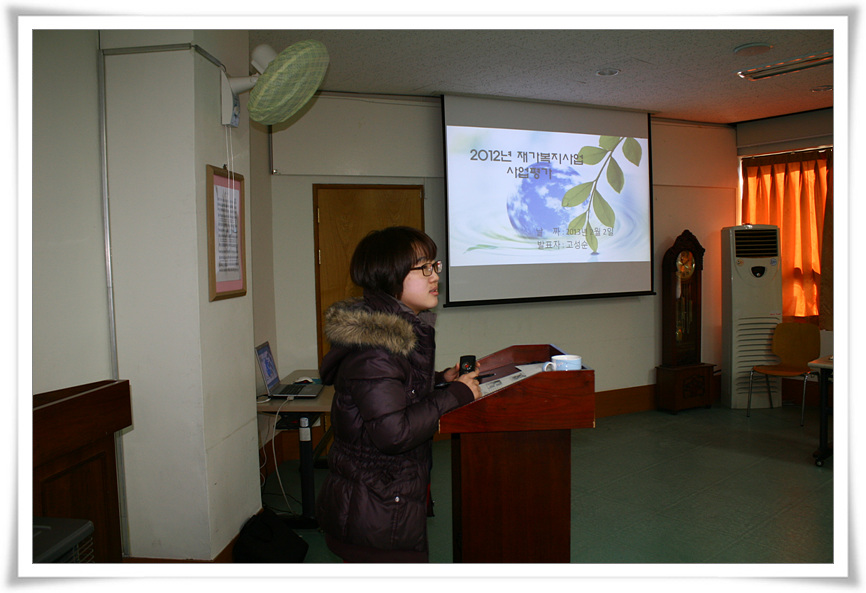 2012년초에 세웠던 사업계획대로 잘 수행하였는지 스스로를 반성해보는 자리였는데요. 사업에 대한 평가를 통해 보다 발전되고 향상된 복지서비스제공을 위해 노력하겠습니다.^^