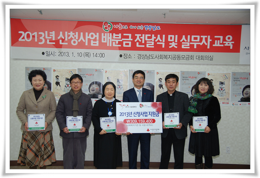 [2013.1.14., 사회복지공동모금회 직업재활사업 배분금 전달식] <?xml:namespace prefix = o ns = "urn:schemas-microsoft-com:office:office" />아드미에요~~^^경남사회복지공동모금회 2012년 기획사업 『장애인 진로 설계 및 직업재활훈련사업』에 선정되어 배분금 전달식에 참여하고 왔어...