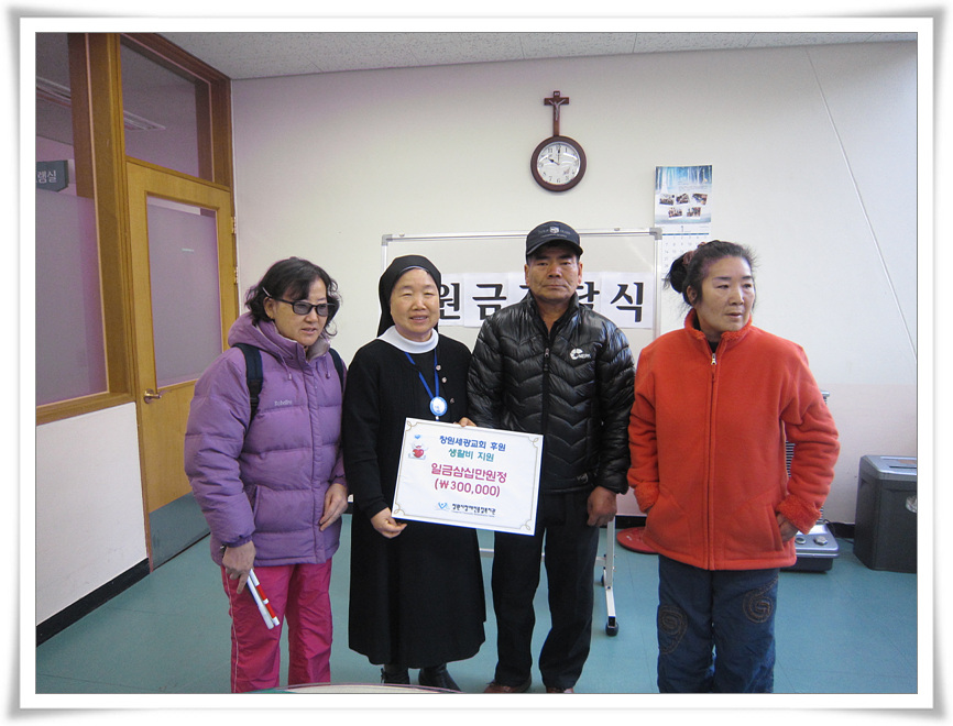 [2013.1.8, 창원세광교회 후원금 전달] 아드미에요~~~^^ 뒤늦은 후원금 전달소식 알려드릴께요.지난 1월 8일(화)에 창원 세광교회에서 동계 저소득 재가장애인 가정에 보탬이 되어달라고 후원금 90만원을 복지관에 기탁하셨고, 저희들은 재가장애인 3가정에 각 30만원씩 후원금을 전달하여 드렸습니다.^^후원금을 보내주신 창원 세광교회 관계자분들, 감사드...