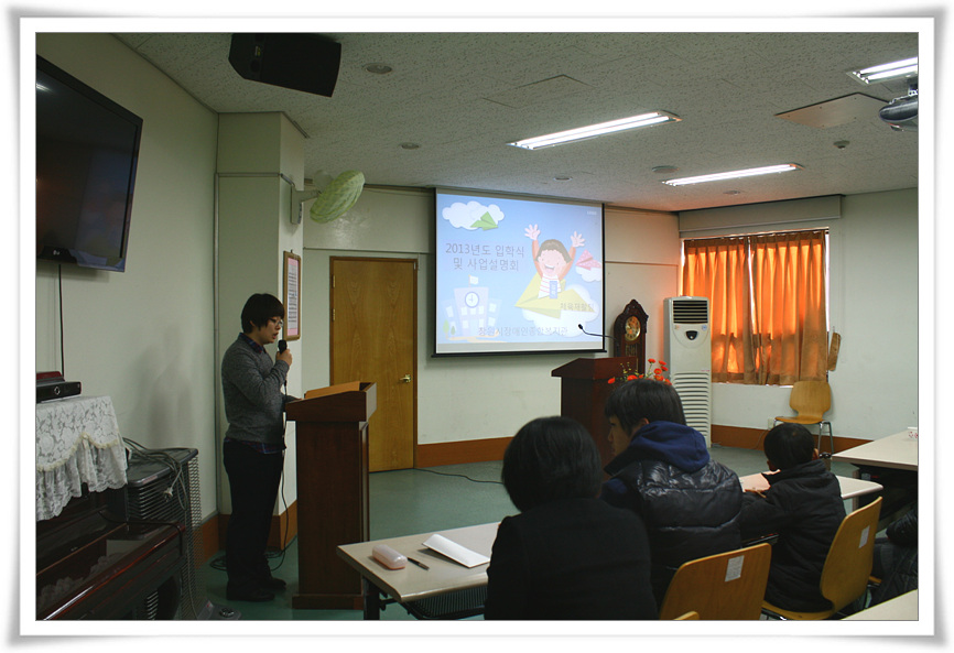복지관에서는 2013년도 프로그램 입학식 및 부모교육을 1월 25일(금)에 진행하였습니다.