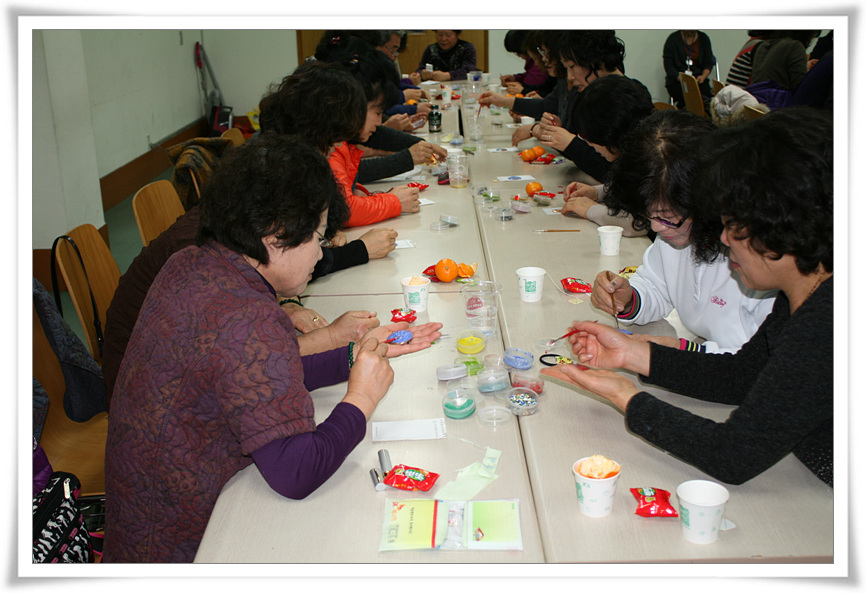이번 교육에서는 그 동안 복지관에 물심양면 많은 활동을 하고 계신 자원봉사자들의 삶에 조금이나마 활기를 넣어 드리고자 칠보공예 박선영 강사님을 모시고 예쁜 칠보를 만들어 보는 것으로 진행되었어요.