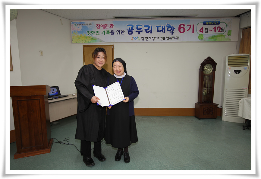 창원시만의 특별한 시책사업인 장애인과 장애인가족을 위한 곰두리대학을 졸업하신 분들의 소감이에요. 1년의 교육과정동안 즐겁고 행복한 시간이 되기를 바라며 진행하였는데....오늘 제6기 졸업식이 거행되었어요.