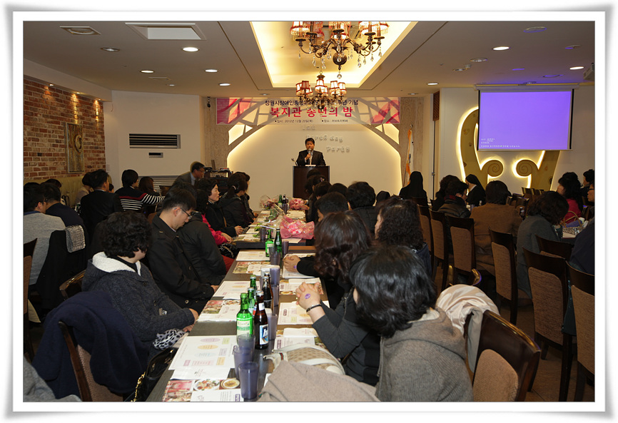 또한 저녁에는 1년 동안 저희 복지관에 열심히 활동하신 자원봉사자, 자원봉사단체, 후원자, 후원단체, 우수 활동보조도우미, 은인들을 모시고 송년의 밤 행사를 가졌어요.