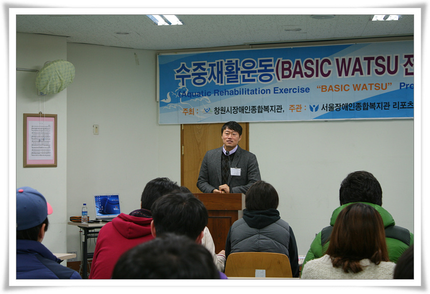 지난 5월에 이어 11월 17일~18일, 양일간에 걸쳐 우리나라 수중재활운동의 메카인 서울장애인종합복지관 리포츠센터와의 협력사업, “2012년 제11차 수중재활운동(Basic Watsu 전문요원)양성교육” 이 성황리에 진행되었어요.