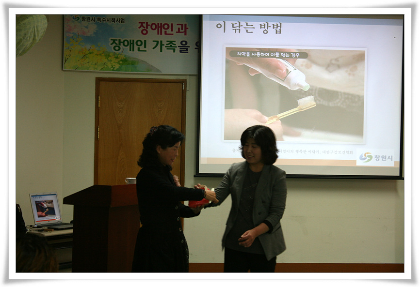 지난 주 10.12(금) 곰두리대학 강의는 창원시 팔용동보건소 직원분들이 방문하셔서 치위생교육으로 진행되었어요.