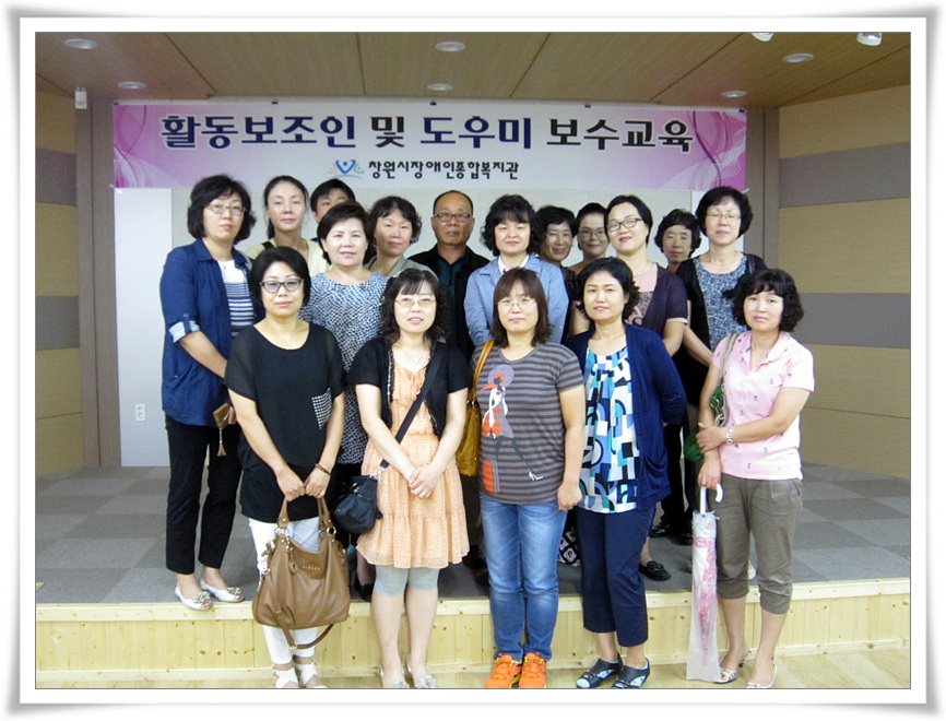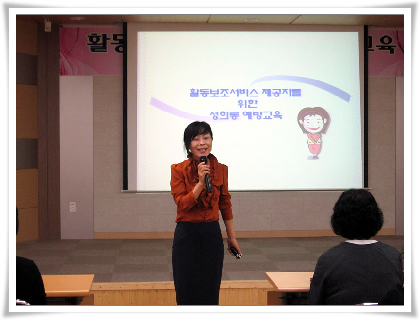 이번 보수교육은 활동지원제도의 활동보조인과 중증장애인도우미지원사업의 도우미 122명이 함께 모여, 정분시(마산노인복지센터 원장) 강사님을 모시고 성희롱 예방교육을 주제로 진행하였습니다.