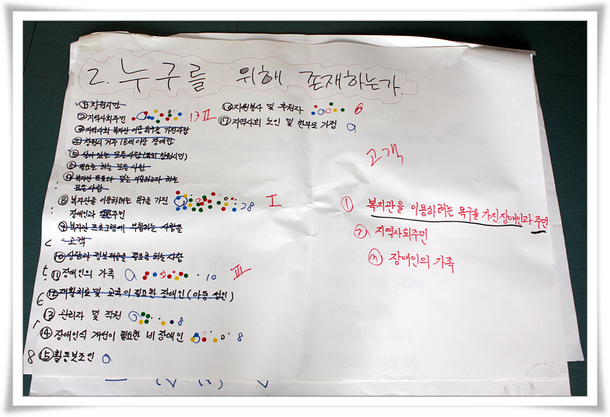 복지관의 존재이유를 알고, 우리는 누구를 위해 존재하며, 복지관을 이용하려는 장애인과 지역주민의 욕구를 파악해 보면서 우리가 앞으로 만들어가야 할 비전수립에 많은 도움이 되었어요.