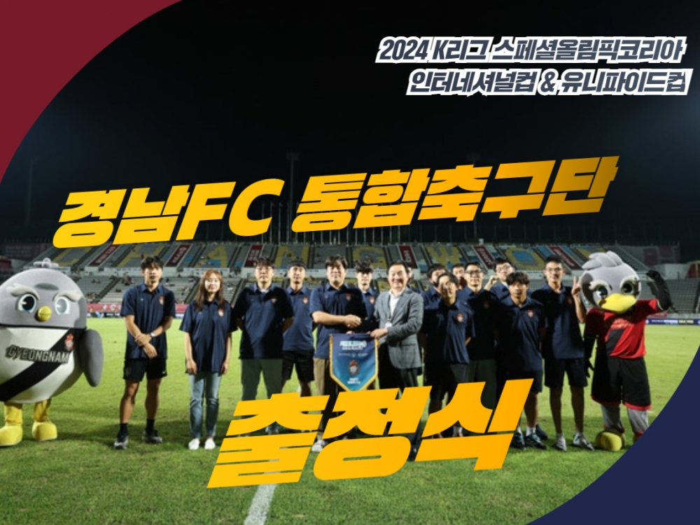 경남FC는 지난 17일, 충북청주전이 열린 창원축구센터에서 2024 스페셜올림픽코리아 K리그 통합축구 유니파이드컵에 출전할 통합축구단의 출정식을 진행했다. 출정식에는 경남FC 지현철 대표이사, 경남FC 통합축구단 김성재 감독, 그리고 통합축구 선수들이 참석했다. 김성재 감독은 팀 창단 이후 4년 연속으로 팀을 이끌고 있다.