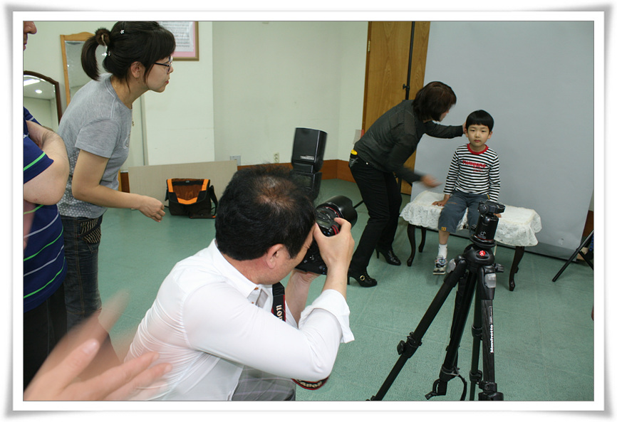 사진찍는 것이 두려운 아이를 달래서 겨우겨우 촬영을 하게 되었는데, 이런 모습에 오늘 복지관에 오신 사진작가님들 감탄의 박수를 아끼지 않으셨어요.