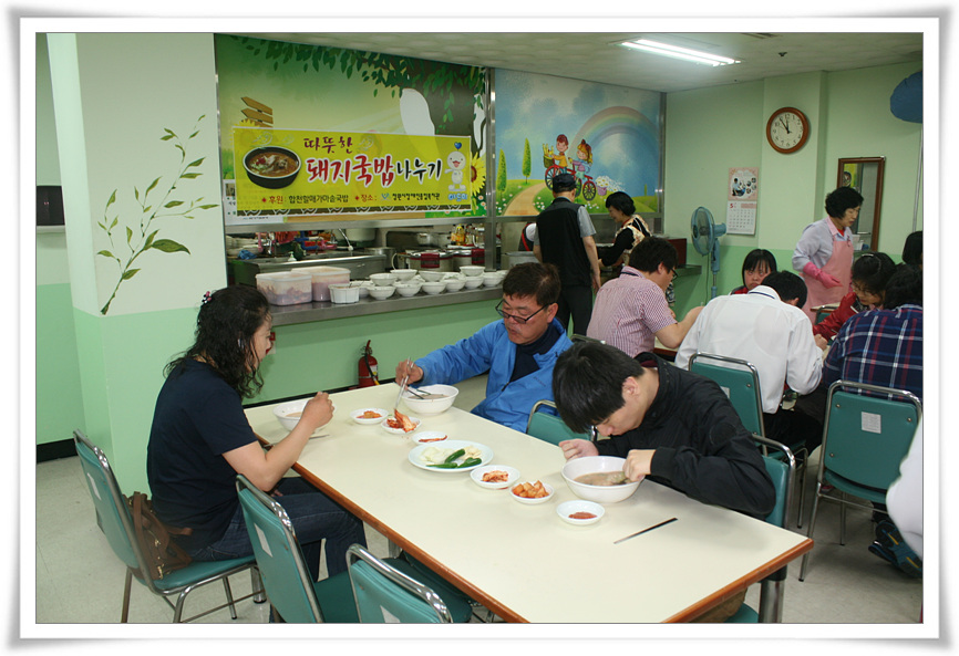 이젠 매월 복지관 식구들은 할머니의 맛난 국밥을 매월 1회 먹을 수 있게 되었죠. 할머니께서 매월 1회 정기적으로 복지관을 찾아주시기로 하셨어요.