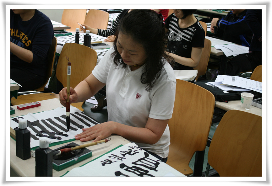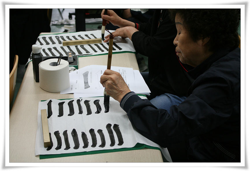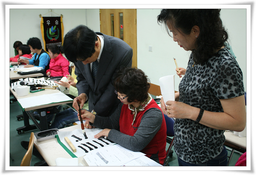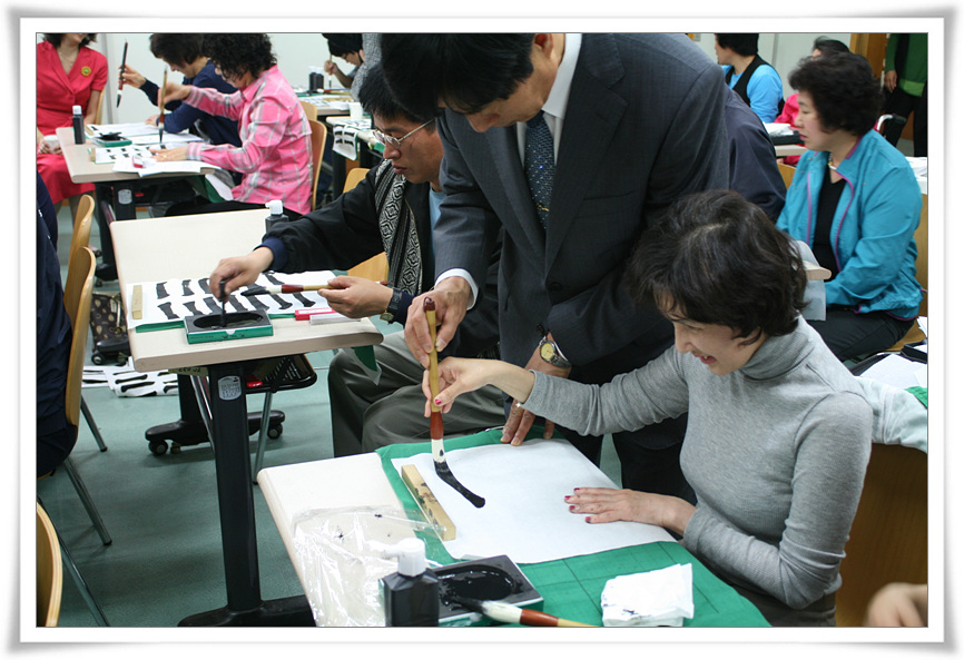 이번 강좌는 동강서예학원 홍성남 선생님께서 서예기초, 가훈쓰기, 좌우명 쓰기 등으로 진행하였어요.