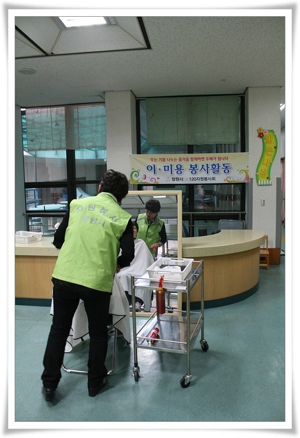경남 창원시120자원봉사회(회장 배수일)는 지난 3월 22일(목) 10:00~15:00, 창원시장애인종합복지관을 찾아 복지관과 인근 주민들을 대상으로 가전제품수리, 수지침 건강서비스, 이미용 서비스 등 봉사활동을 벌였습니다.