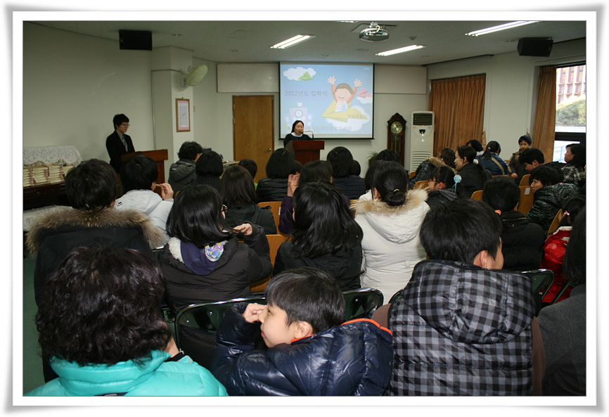 복지관에서는 2012년도 전체 입학식을 오후 3시에 각 프로그램 참가 아동 및 청소년 그리고 부모님들이 참석한 가운데 실시되었습니다.