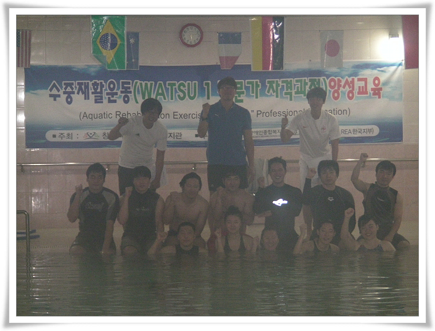 2011년 11월 19일~20일, 26일~27일 총 4회에 걸쳐 수중재활운동 전문기관(서울장애인종합복지관 리포츠센터)과의 협력사업으로 제1차 수중재활운동 WATSU 1 전문가 자격과정을 개최 하였습니다.수중재활운동 전문요원을 양성함으로서 장애인들에게 보다 나은 재활의 서비스를 제공하고자 실시하였는데 많은 분들의 참여로 열띤 교육이 진행되었습니다.모두 수고 ...