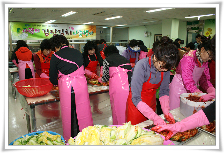 11월 28일~30일, 사랑의 김장김치나누기 행사를 한국마사회 창원지점 <?xml:namespace prefix = o ns = "urn:schemas-microsoft-com:office:office" />의 후원과 늘사랑봉사회, 적십자봉사회 등 많은 자원봉사자들의 도움 으로 실시되었습니다. 배추절이기부터 김장담그기까지 정...