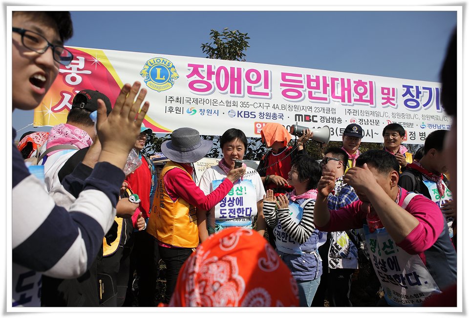 이번 등반대회는 라이온스 클럽 회원 350여 명과 창원시 장애인종합복지관 장애인 75명이 참가해 회원들에게는 사회봉사 실천을, 장애인들에게는 도전과 용기를 갖는 시간이 됐다.