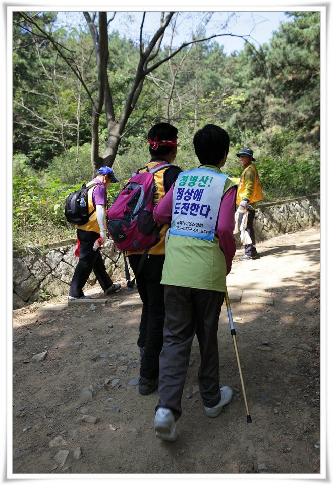 모든 준비를 마치고 오전 11시가 되자 봉사팀·감동팀·사랑팀·희망팀으로 나눠 산을 올랐다. 1㎞ 정도의 비교적 평탄한 길이 끝나자 오르막 1㎞가 기다리고 있었다.