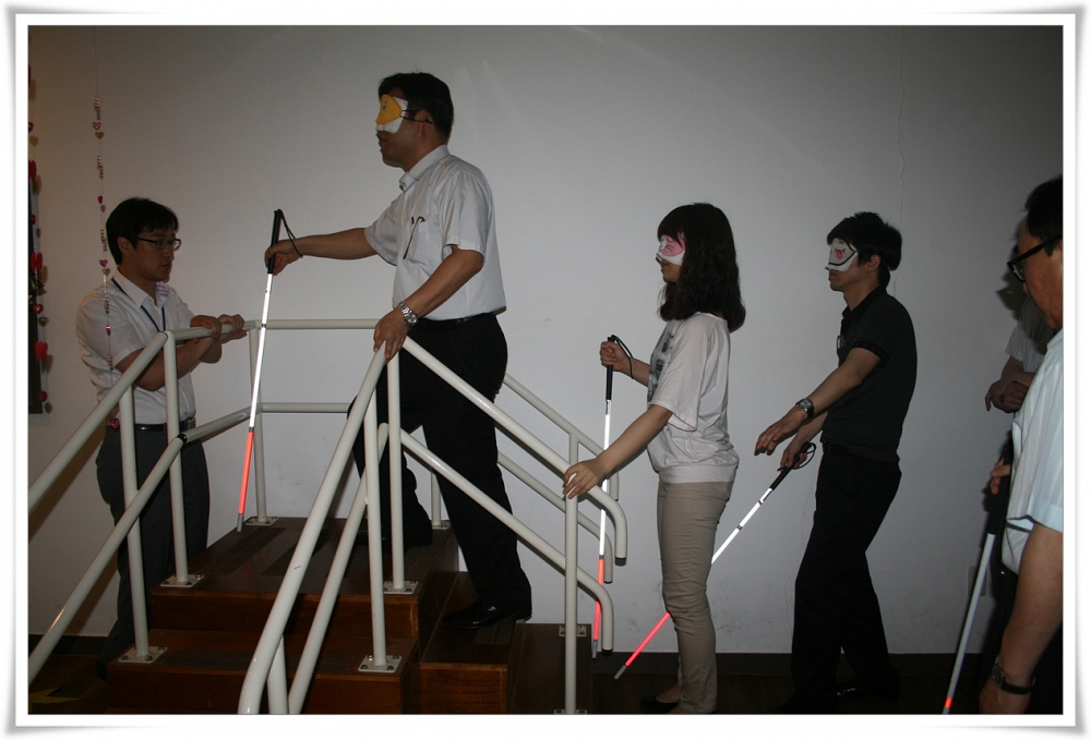 2011년 6월 14일(화), 도로교통공단 울산·경상남도 지부(지부장 한원섭) 임직원분들이 기관을 방문하여 장애오감체험을 하였습니다. 교통안전에 관한 장애인안전교육을 실시하기 전 미리 임직원들이 몸소 체험을 하러 오셨습니다.