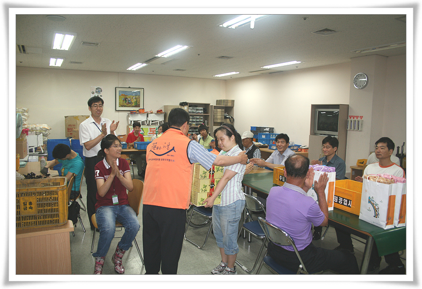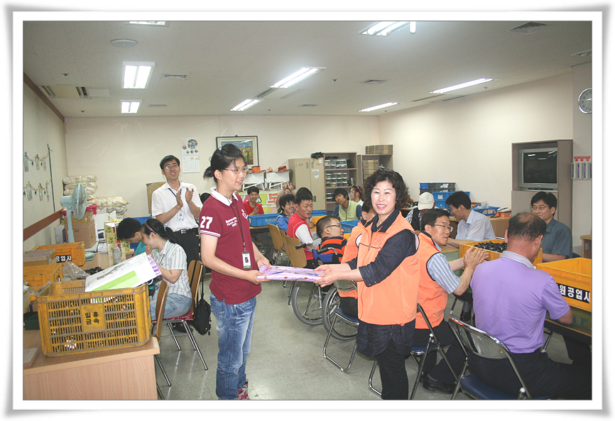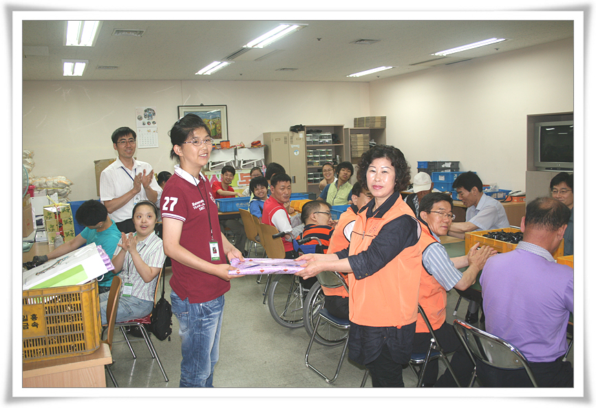 법무부 범죄예방위원 창원지역협의회 방문 페이지 정보 작성자 안병용 댓글 0건 조회 7,770회 작성일 11-07-11 13:17 본문 2011.7.7(목), 법무부 범죄예방위원 창원지역협의회 회원분들이 복지관을 방문하셔서 보호작업장 훈련생들에게 망개떡과 옷을 후원해주셨습니다. 감사합니다. 이전글화재발생 대비 소방훈련 실시 11.07.14 다음글창원 청실회 후원물품 전달 11.07.01 목록 댓글목록 댓글목록 등록된 댓글이 없습니다.