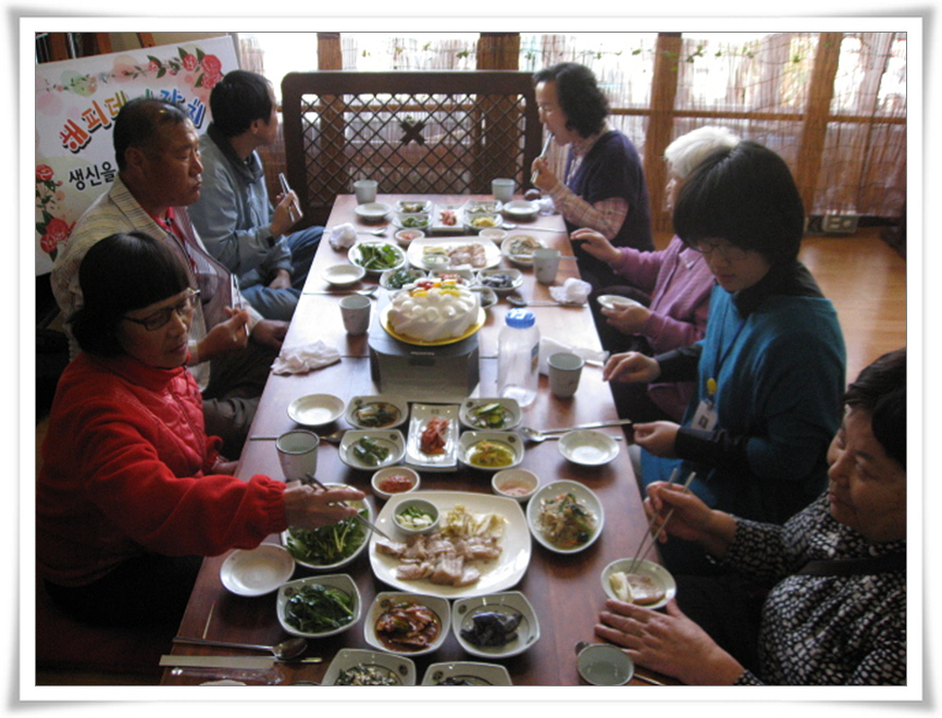 4월 13일 한식당 사림도원의 후원으로 재가장애인 어르신 6분을 모시고 4월 생신잔치를