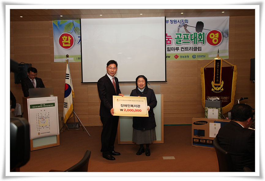 2011년 3월 29일(화), 우리복지관 특별회원인 한국청년지도자연합회 창원시지회(회장 이규태)에서 복지관에 사랑나눔으로 장애인돕기성금을 복지관에 후원해 주셨습니다. 항상 감사합니다.