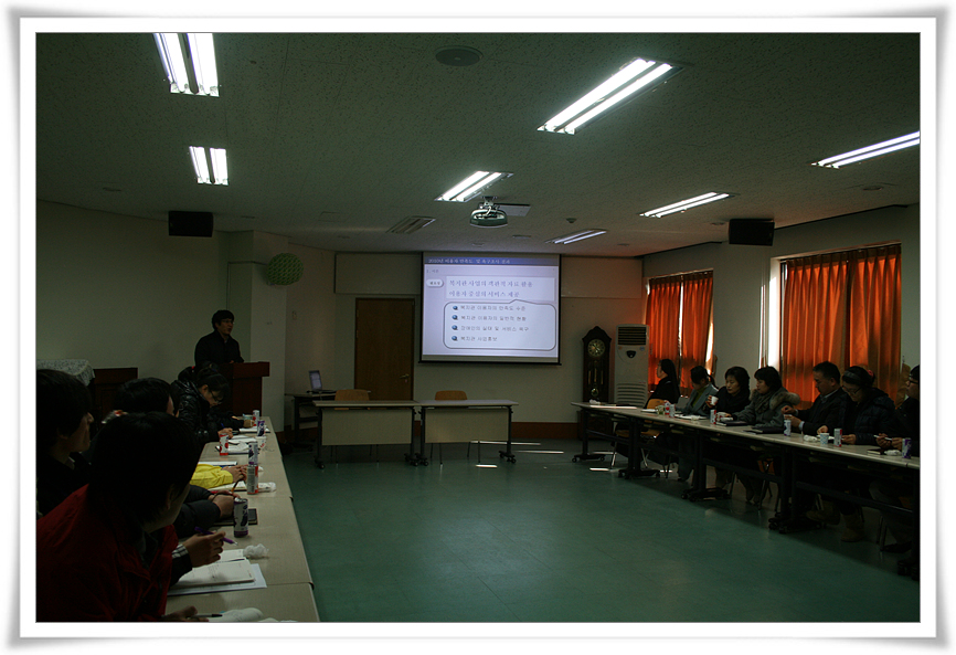 2월 직원교육으로 2010년 이용자만족도 및 욕구조사에 대한 결과를 전체직원을 대상으로 실시하였습니다.