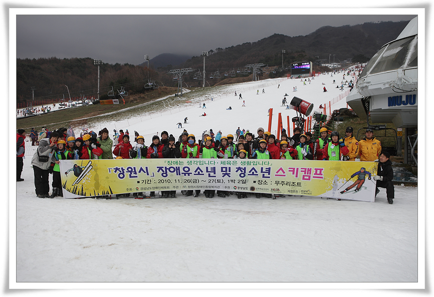 대한장애인체육회에서 후원하고, 경남장애인체육회에서 주최하고 우리복지관이 주관한 2010년 경남장애인생활체육지원사업 『창원』 장애유소년 및 청소년 스키캠프를 11.26~27, 1박 2일간 무주리조트 에서 실시하였습니다. 첫날 무주리조트내 허브체험장에서 예쁜 허브비누만들기 체험을 하였고, 다음날 아침부터 스키강습을 시작으로 초보자용 슬로프를 직접타고 내...