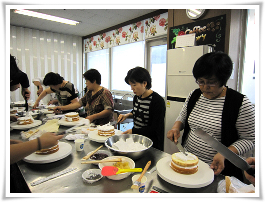 곰두리대학 제과제빵실습으로 "생크림케이크 만들기"