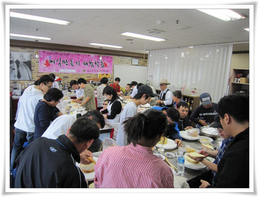 10/20(수), 곰두리대학 장애인반과 가족반 각각 경남요리제과제빵학원에서 즐거운 케이크만들기 체험을 하였습니다.