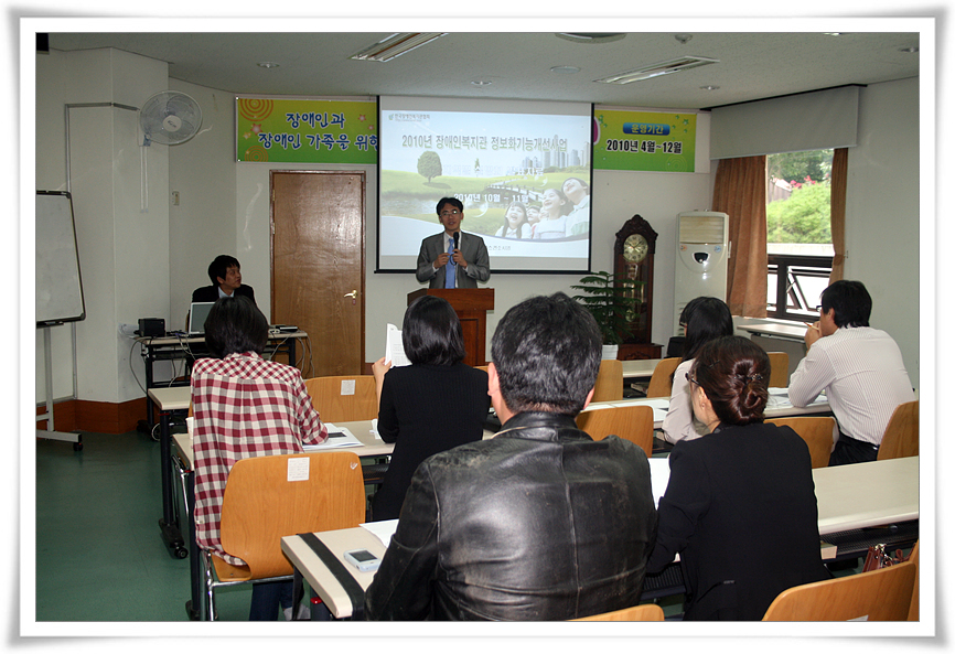 2010년 10월 14일(목), 신규자원봉사자 및 자원봉사단체를 대상으로 실시한 이번 교육에서 홍보동영상 관람을 통한 복지관 전반적인 사업흐름과 장애오감체험을 통한 장애이해교육 및 장애인들의 어려움을 직접 체험해보고느낄 수 있는 시간을 가졌으며, 자원봉사자 기본교육을 통한 자질 강화와 봉사자들간의 지역사회정보공유의 시간을 통해 소속감을 가질 수 있는 뜻깊은...