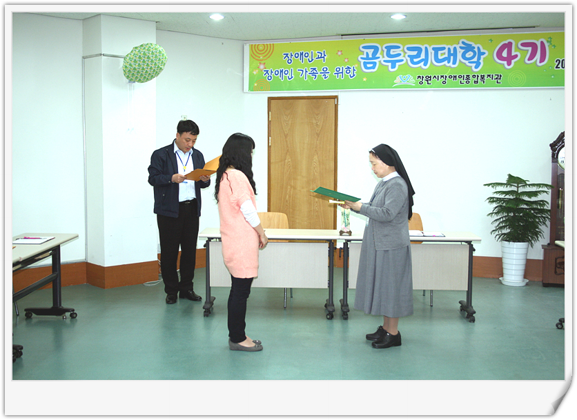 경남사회복지사협회에서 주관하는 제4회 사회를 밝게하는 사회복지사에 사회재활팀 이경민 사회복지사가 선정되었습니다. 평소 여성장애인복지증진을 위한 사업과 곰두리대학 과정 운영 담당으로 사회를 밝게한 공로가 인정되었습니다. 축하드립니다.
