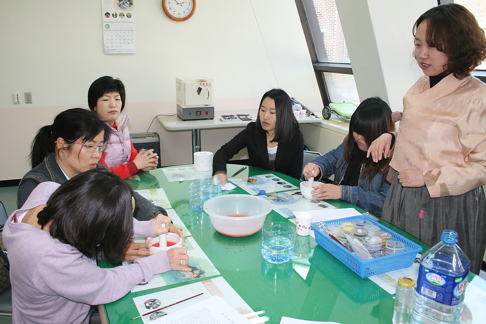 불과 색채의 조화를 다루는 칠보공예는 소윤공방대료 박선영선생님과 함께 매주 월요일 오후에 진행되며, 홈패션, 생활양재 등을 다루는 섬유공예는 침선비대표 서영임선생님과 함께 매주 화요일 오후에 진행됩니다.
