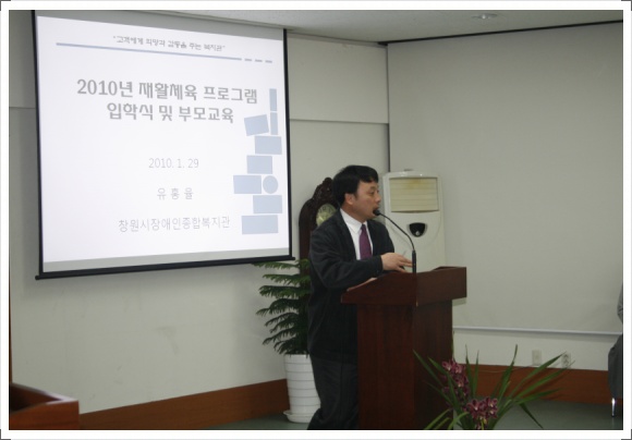 2010년 1월 29일 복지관 강당에서 체육재활사업 이용자들의 오리엔테이션이 있었습니다.
