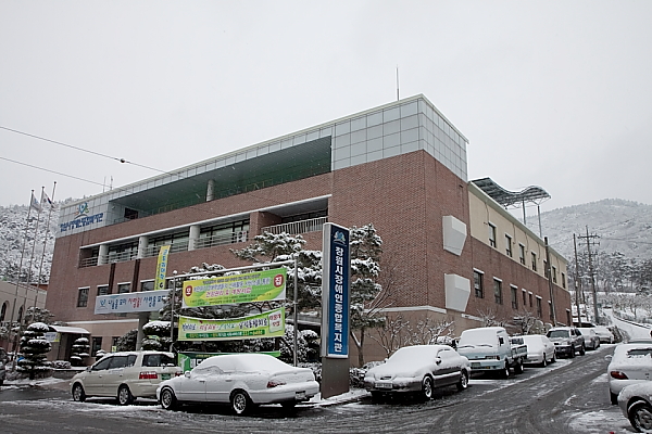 그런데 복지관을 이용하시는 장애인분들의 안전을 위해 복지관 접근 도로 제설작업을 하였습니다.