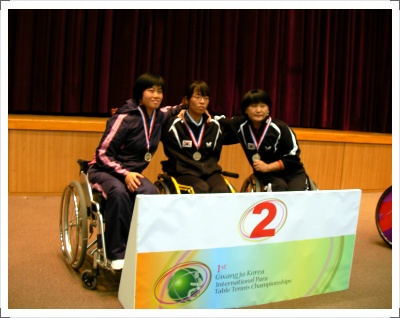 우리복지관 소속의 강외정, 정영아, 이월순 선수가 우리나라를 대표하여 2009 광주국제 장애인탁구선수권대회에서 우수한 성적을 거두었습니다..