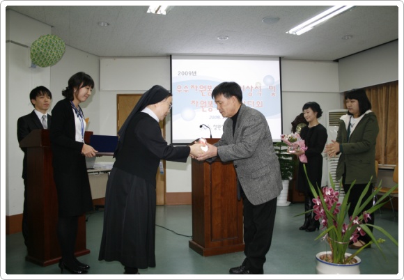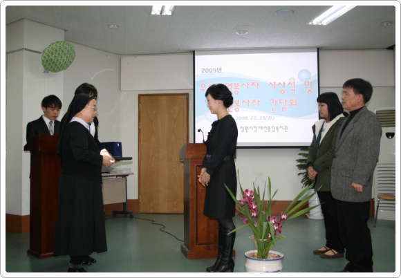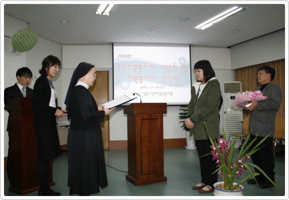 2009년 한해동안 복지관을 위해 수고해주신 우수자원봉사자에 대한 시상 및 간담회가 있었습니다.