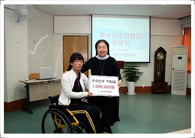2009. 10. 20(화) <?xml:namespace prefix = o ns = "urn:schemas-microsoft-com:office:office" />2009 아세아&오세아니아 장애인탁구대회 출전 우수선수 지원금 전달식 ★우수선수 포상금 지급, 필승결의 다짐!!