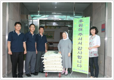 2009. 8. 27동창원 농협 후원물품(쌀)전달식 <?xml:namespace prefix = o ns = "urn:schemas-microsoft-com:office:office" />동창원 농협에서 복지관으로 20kg 쌀 10포대를 후원해주셨습니다.이날은 복지관에 오셔서 기관 라운딩과 함께 간단한 오감체험도 하셨고, 앞으로 기관간의 협...