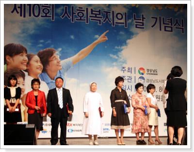 2009년 9월 8일(화) <?xml:namespace prefix = o ns = "urn:schemas-microsoft-com:office:office" />★『제 10회 사회복지의 날』 기념식 보건복지가족부 장관상 수상 “Fighting Gyeoungnam, 행복한 동행, 따뜻한 세상”이라는 주제로 열린 제 10회 사회복지의 날 ...