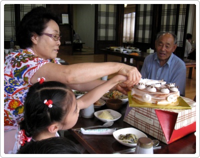 매월 셋째 주 수요일에 열리는 생일잔치는 맛있는 점심식사와 작지만 큰 선물도 준비하여 드린답니다.