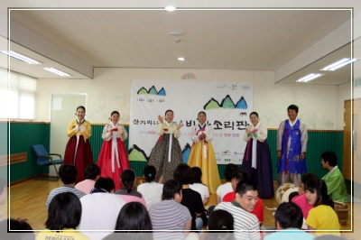 이번 행사는 복지관 보호작업장 훈련생들과 이용자들을 위한 공연으로 “내 다리 내놔”, 사랑가 단막근, 토끼와 거북이 등 판소리와 민요를 들려주셨습니다. 1시간 가량의 즐거운 공연이 되었고 수고해주신 바닥소리 공연단에게 감사의 말씀을 드립니다.