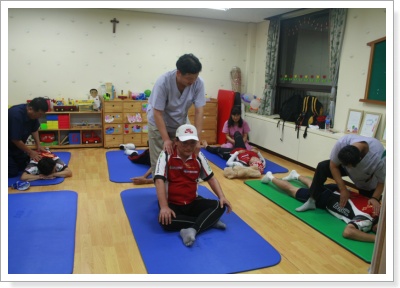 지난 9월 4일은 창원시장애인종합복지관에서 1박을 하였습니다. 자전거 릴레이 참가자 및 스태프 등 40여명의 참가자가 숙박을 하였고, 피로에 지친 참가자를 위해 경남 시각장애인협회 소속 안마사가 선수들에게 안마 서비스를 제공하였습니다.