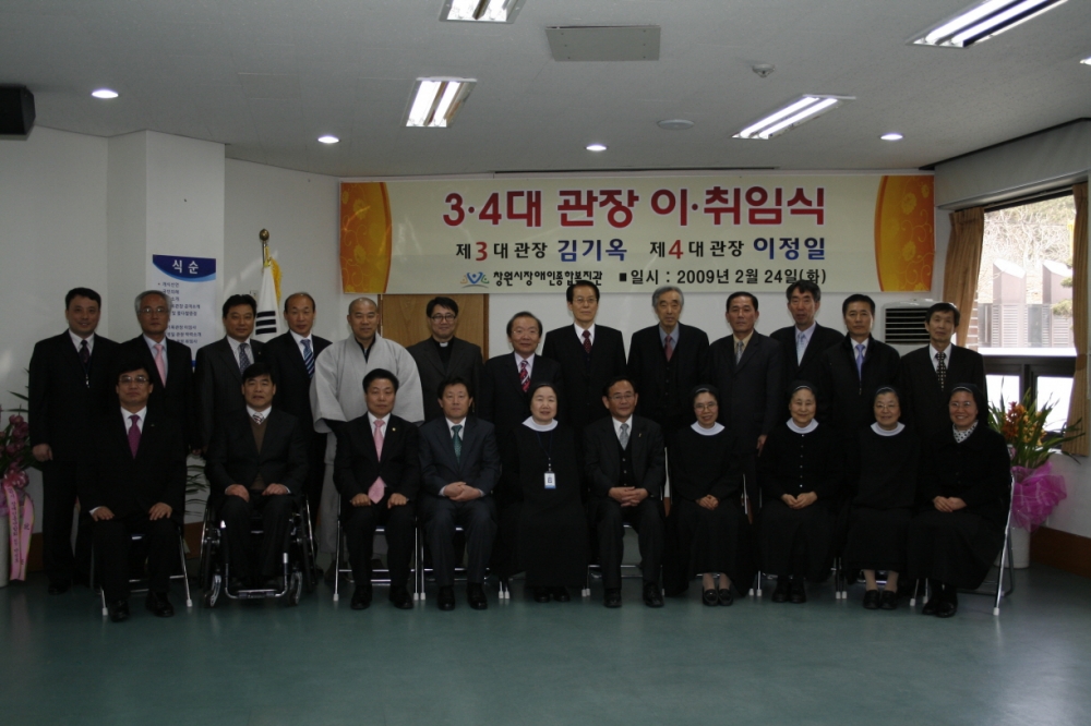 창원시장애인종합복지관 제3,4대 관장이취임식이 창원시행복나눔과 정창현과장님과 사회복지법인 범숙 사무국장님, 복지관 운영위원님, 경남지역 장애인복지관장님들과 각 장애인단체장님들을 모시고 열렸습니다.<br />