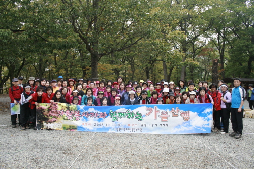 우리복지관 자원봉사자들의 단합과 화합의 장을 마련하고 복지관에 대한 소속감 및 자부심을 증대시키기 위한 \"자원봉사자와 함께하는 가을산행\"이 10월 23일(목), 80여명의 자원봉사자와 함께 밀양표충사 및 재약산에서 실시되었습니다.<br />